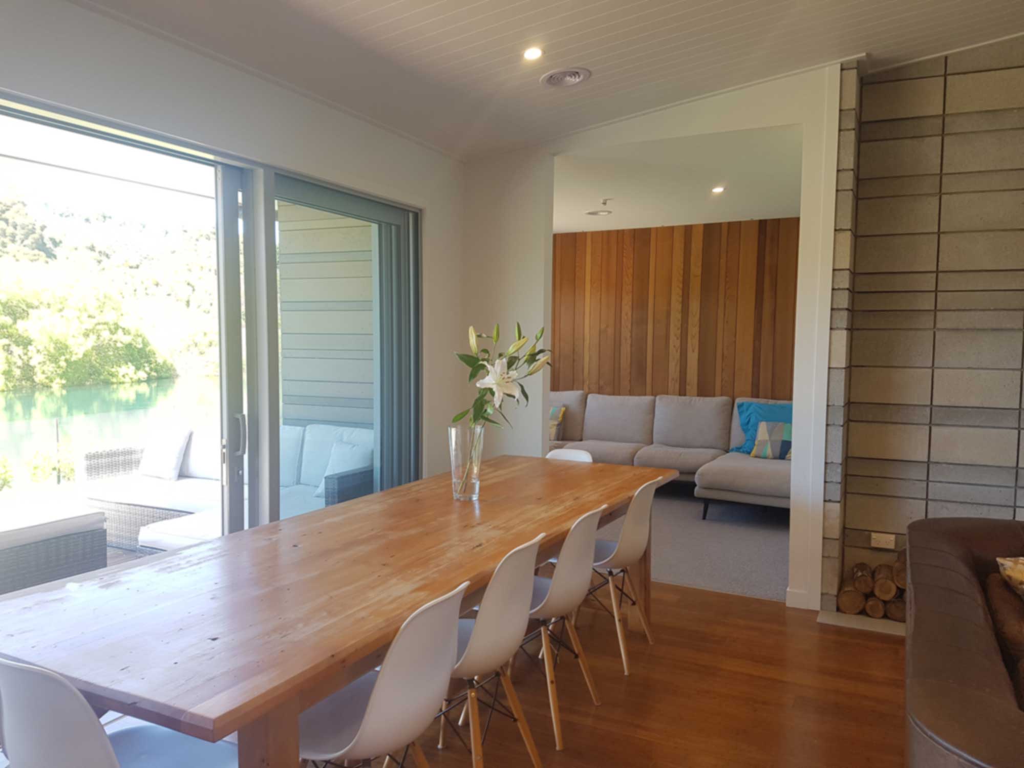 Waste away the summer days enjoying the company of friends and family in this absolutely stunning home located on the bank of the Waikato River. It won’t be hard to switch to holiday mode the moment you arrive at this riverside retreat. Sun drenched all day long the indoor outdoor flow to the decks and large lawn area on the river embankment makes this the perfect place for you to make some lasting holiday memories. This house boasts open plan kitchen, dining area with an adjoining TV room. There are 3 bedrooms, 1.5 bathrooms and one single garage. With security gates to enter the street you will feel secure during your time here.